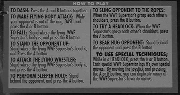 We definitely want you to be able to maximize your game play so we have included each of the wrestling moves and how to achieve them on the front of the arcade game but also please see below for your knowledge as well & good luck! Whatcha gonna do when Hulkamania runs wild on you?!